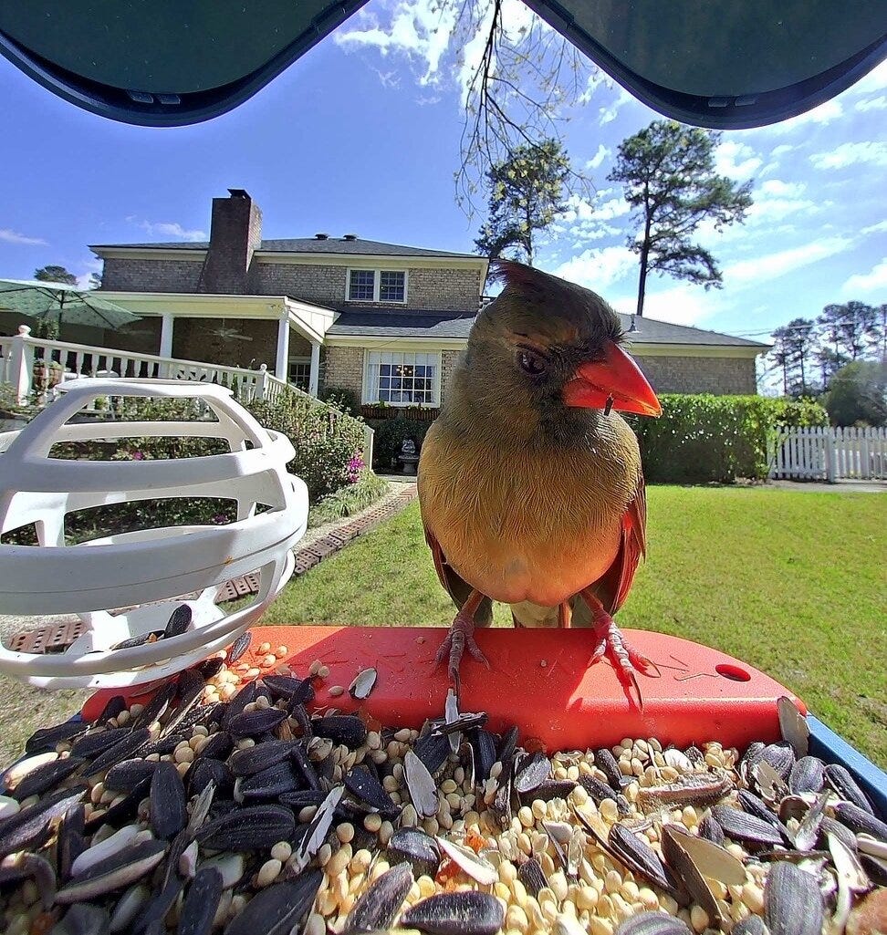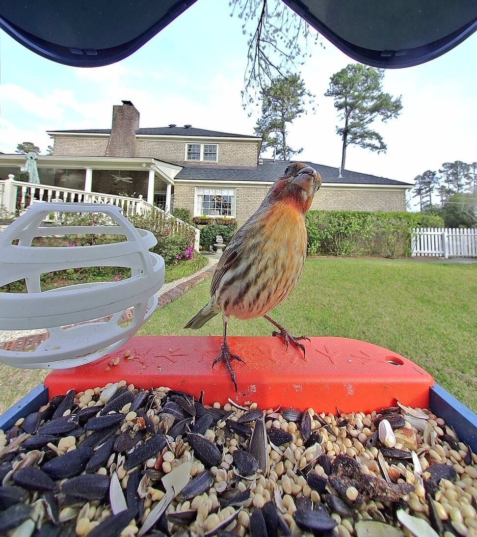 But when I got a look at a house finch looking into the camera and back at me, I was hooked. (The app includes an AI you can use to recognize each bird species; so far, I’ve seen finches, eastern bluebirds, northern cardinals, chipping sparrows, tufted titmouse, and lots more.)